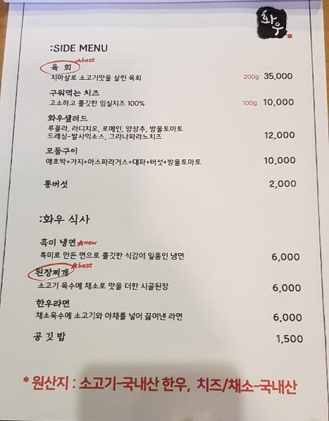 화우는 1+이상의 고기만을 취급하며 3주~5주가량 숙성된 한우만을 취급하는 전문점입니다.